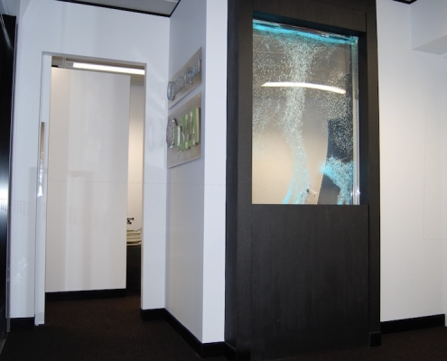 In the heart of Sydney CBD this new office project included space planning, construction drawings, drafting, colour, material and furniture selection with the inclusion of a reception area water feature.