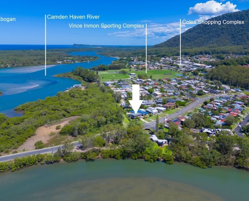 “ STYLISHLY UPDATED HOME WITH SELF-CONTAINED UNIT: Positioned along the picturesque Camden Haven River, 496 Ocean Drive offers a rare opportunity to secure a versatile riverside property with room for extended family, dual living, or income potential. Renovated with a modern, charming aesthetic, this home delivers effortless comfort, stunning natural surrounds, and an enviable lifestyle just moments from Laurieton’s town centre… “